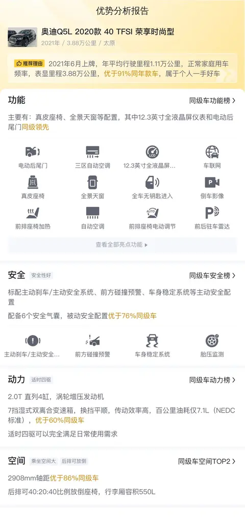 以上,就是我们对这辆二手奥迪Q5L的全部介绍了,希望可以帮助到您。