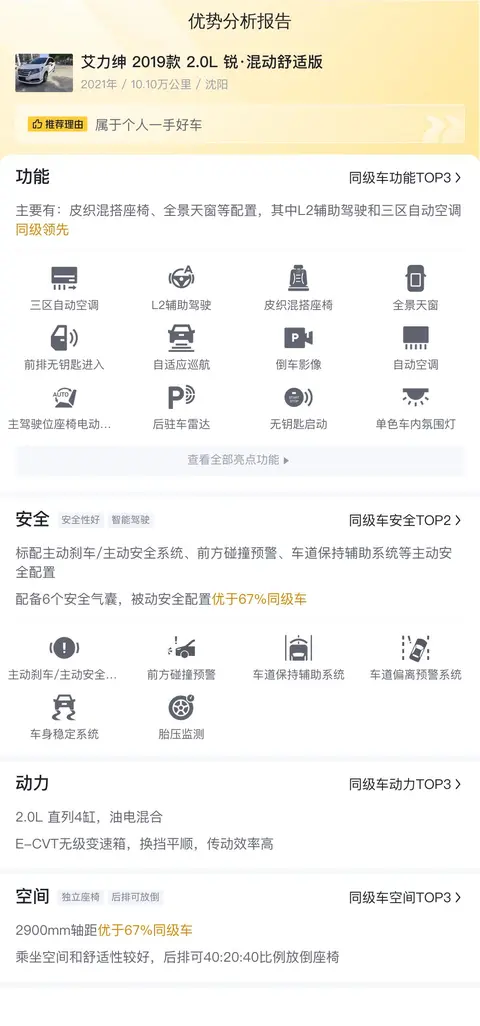 在选购二手车时,尤其是像艾力绅这样的中高端MPV时,应特别关注车辆的保养记录、里程数、及是否有专业检测报告。这辆艾力绅 2019款 2.0L 锐·混动舒适版,整体来看,车况良好,配置丰富,尤其是其混动系统在燃油经济性方面的表现,对于日常使用成本是一个不小的节省。不过,考虑到其较高的报价,建议消费者在购买前务必进行全面的检查,特别是内饰部分的磨损程度,以确保其性价比。