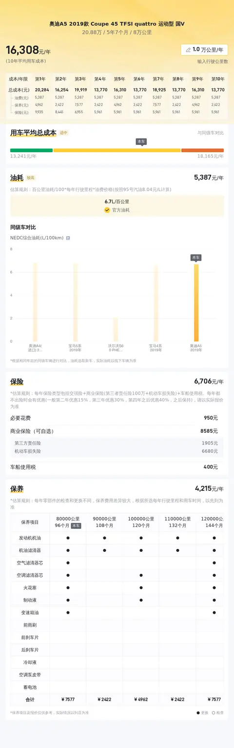 用车成本方面,我们估算了一下,这辆车的年均综合用车成本约1.6万元左右。这项花销是跟车主的实际用车场景和使用强度有直接变化的。好了,说完了市场行情和用车成本,下面让我们一起看看这辆车的配置。
