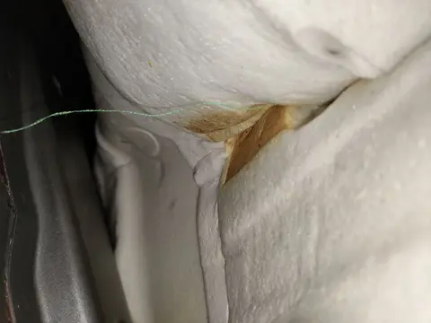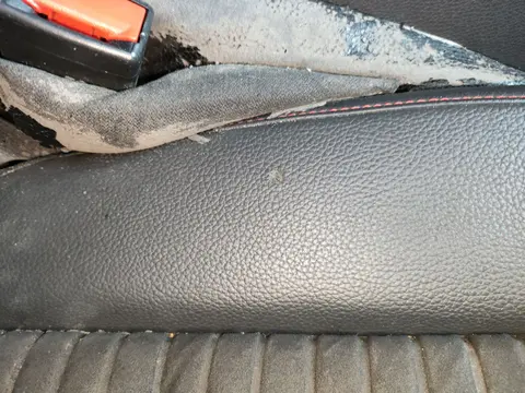 内饰检验:内饰方面,主要的瑕疵集中在座椅上。主驾座椅和副驾座椅存在破损的情况,而后排座椅则有脏污。以下是部分瑕疵实拍图。