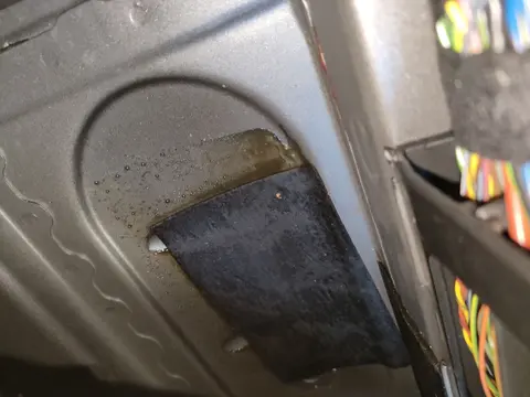 泡水检验:在泡水检测方面,除了三项瑕疵外,其他检测项目均顺利通过。瑕疵详情包括左前地毯及其周边饰条/饰板有泥沙、右侧门槛内部空腔有泥沙、右前地毯及其周边饰条/饰板有泥沙。以下是部分瑕疵实拍图。