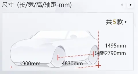 比亚迪秦L DM-i的车身尺寸为4830mm×1900mm×1495mm,轴距同样是2790mm。