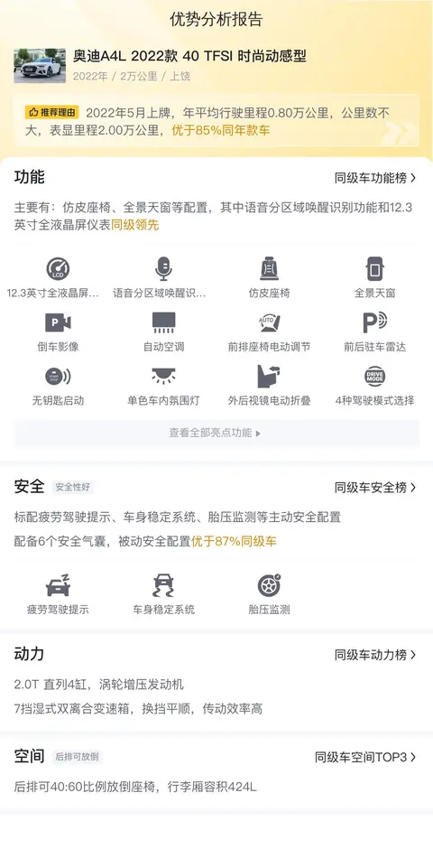 综上所述的新车含税价、用车成本、市场行情、优势分析、同款比价等数据仅供参考。在配置部分,因为二手车非标品,车辆可能会存在配置改装的情况,具体车况信息需要线下结合车辆实际情况进行综合参考。