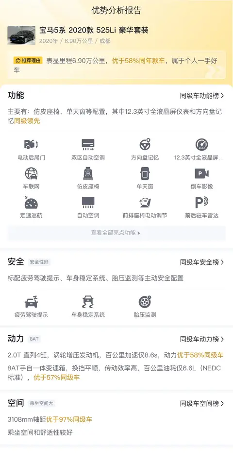 综上所述的新车含税价、用车成本、市场行情、优势分析、同款比价等数据仅供参考。在配置部分,因为二手车非标品,车辆可能会存在配置改装的情况,具体车况信息需要线下结合车辆实际情况进行综合参考。