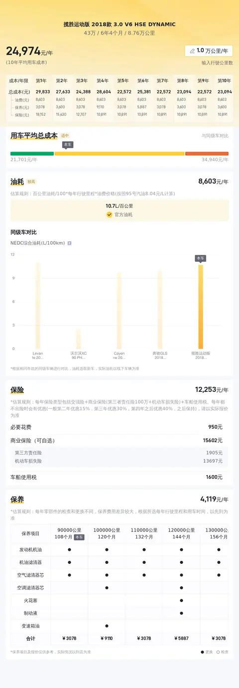 在用车成本方面,根据估算,这辆车的年均综合用车成本约为2.5万元左右。对于一款豪华SUV而言,这样的成本支出仍在可接受范围内。