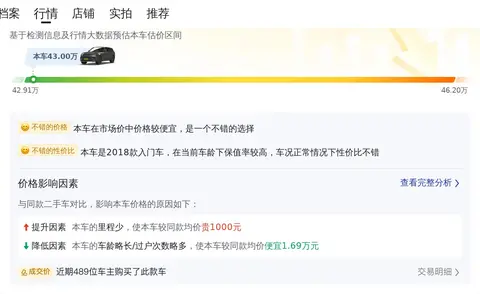 根据大数据分析,目前这款车型的二手车市场价格区间在38.5万至47.47万之间,而该车的报价为43万,处于合理适中的水平,具有一定的性价比。