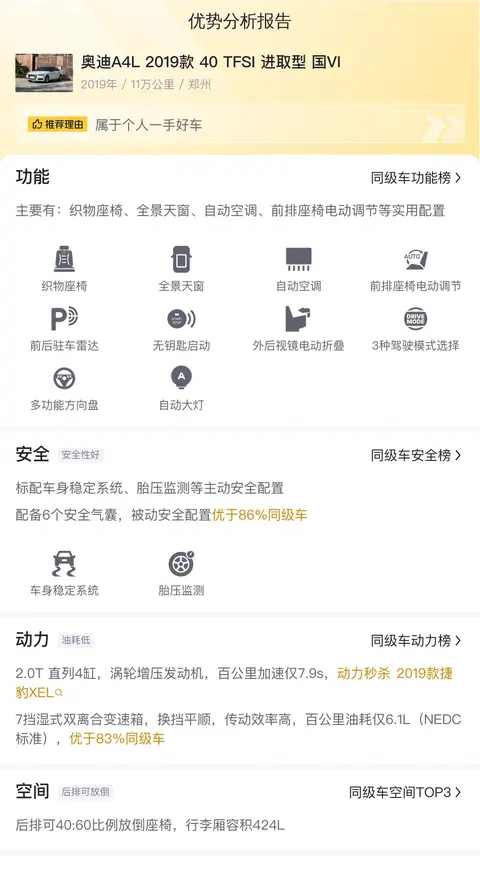 综上所述的新车含税价、用车成本、市场行情、优势分析、同款比价等数据仅供参考。在配置部分,因为二手车非标品,车辆可能会存在配置改装的情况,具体车况信息需要线下结合车辆实际情况进行综合参考。