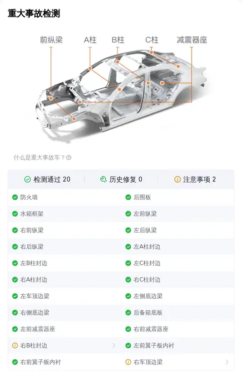 经懂车帝专业检测,这辆车虽然有多处瑕疵,但是它并不是事故车,整车的安全性还是有的,只不过后期可能需要修复一下。