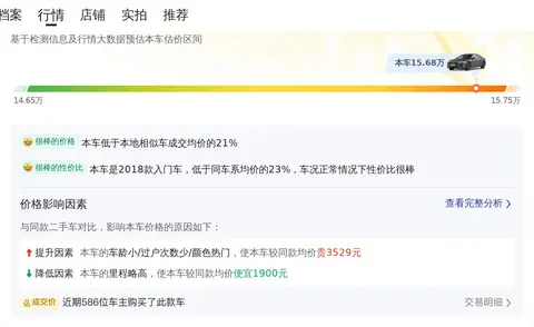 根据懂车帝大数据分析,奥迪A6L 2018款 30周年年型 TFSI 进取型的市场行情在14.24—17.76万之间,本车的报价15.68万,位于市场行情的中间价位,本车同车系口碑4.58,排名前列,本车里程10.87万公里,存车时间10个月,车况一般,不占优势,但本车价格属于市场行情的中等水平,综合性价比指数72%,还算可以。