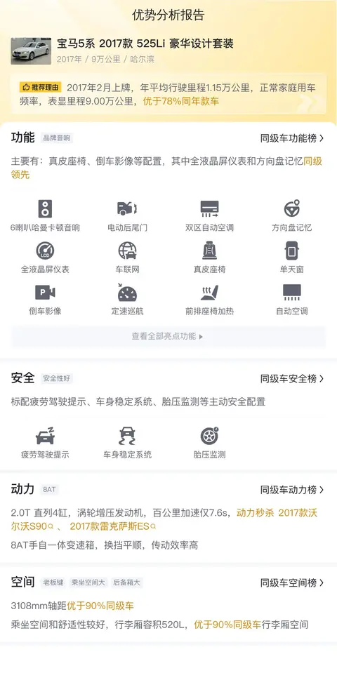 综上所述的新车含税价、用车成本、市场行情、优势分析、同款比价等数据仅供参考。在配置部分,因为二手车非标品,车辆可能会存在配置改装的情况,具体车况信息需要线下结合车辆实际情况进行综合参考。