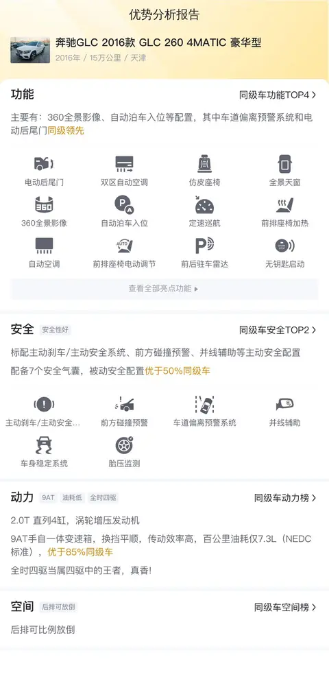根据懂车帝平台数据显示,这款奔驰GLC 2016款 GLC 260 4MATIC 豪华型在全国范围内有数十辆在售,通过对比这些车辆的价格,可以更直观地了解市场的行情。