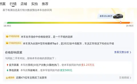 车辆的价格受多个因素的综合影响,主要包括车辆的年限、里程、车况、配置以及市场供需情况等。对于二手车而言,每一辆车都是独一无二的,其价格设定也会根据车辆的具体情况进行调整。像年限,这辆车距今2年5个月,少于均值2.9万公里,加价10,800元。里程方面,这辆车行驶了6,000公里,少于均值2.9万公里,加价10,800元。车况方面,外观、内饰、功能都完好,加价2,800元。配置方面,这辆车增加了手机App远程控制、三区自动空调等功能,加价1,600元。过户次数,0次过户,少于均值0.3次,加价1,300元。颜色,深灰色,加价184元。综合来看,这辆车在年限、里程、车况、配置、过户次数、颜色等方面都优于同款车型,因此价格也相对较高。