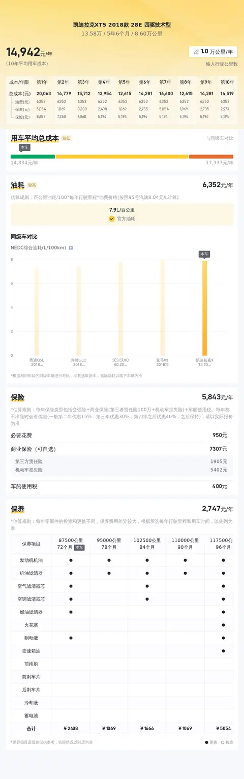 凯迪拉克XT5 2018款 28E 四驱技术型的市场行情价为12.74万至15.85万,该车报价13.58万,价格适中,考虑到其车况良好、配置实用且里程数较少,加之凯迪拉克品牌的市场认可度和该车型的良好口碑,这都赋予了这台二手车较高的性价比和市场竞争力,所以,该车还是具有不错的市场吸引力的,值得考虑购买。