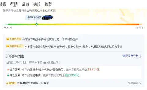 目前这辆车的售价是15.88万,低于同车系均价的32%,价格上占有很大优势,同时保值率也较高。