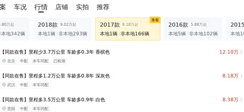 二手车一车一况,一况一价,市场价格波动大,懂车帝针对市场在售的同款车型,按照车况差异划分了不同价格区间,您可以根据综合车况等因素判断这款车的报价是否合理。