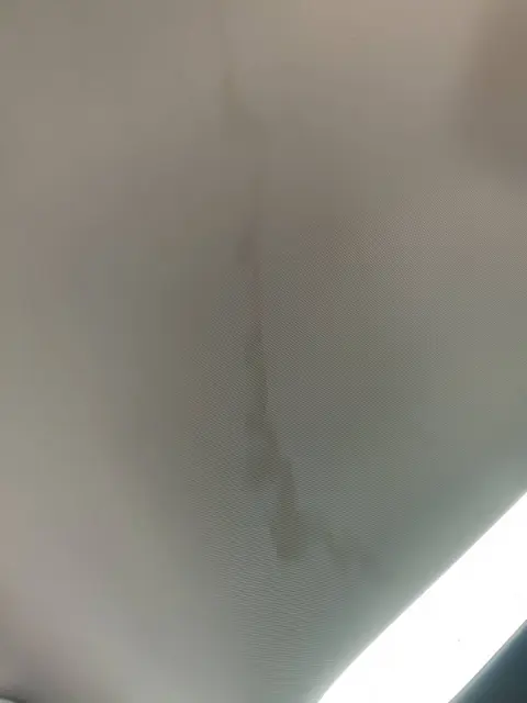 接下来是内饰检测,整体状况良好,一处瑕疵需留意。顶棚有脏污痕迹,看起来像是前任车主养的宠物留下的痕迹,稍微清洗一下应该就能恢复干净。其他内饰部分均未发现明显瑕疵,整体保持得相当不错。