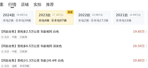 这辆车于2023年8月在吉林上牌,至今行驶了1.54万公里,有过一次过户记录,车身为白色。该车新车指导价为32.18万元,目前二手车报价为19.8万元。