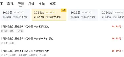 市场行情也是影响车辆价值的重要因素。目前,该车型的市场价格相对稳定。由于二手车具有一定的特殊性,每一辆二手车都有其独特性,所以价格也都不一样。这辆车目前的报价为28万,价格基本符合该车型的市场价值。根据市场评估,这辆车大约再行驶2年后可卖22万,约折价19.1%,如果您对这辆车感兴趣,认为它的性价比合适,那么就可以考虑入手。