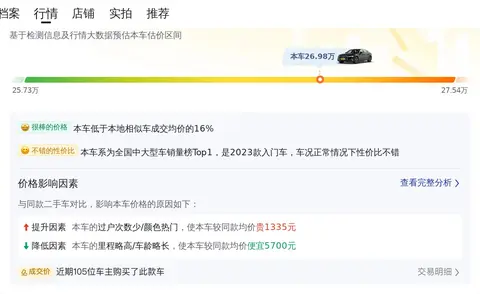 这辆奥迪A6L 2023款 40 TFSI 豪华致雅型二手车,卖家报价为26.98万元。这个价格在市场行情中处于较为合理的水平。考虑到这是一辆未经过改装的一手原厂车,且车况良好、行驶里程适中等因素,这一价格具有一定的吸引力。同时,A6L作为奥迪品牌的经典车型之一,在市场上的认可度较高,也为其保值率提供了一定的保障。