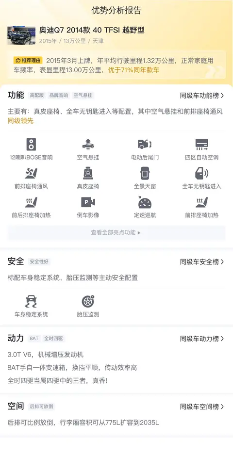 在竞争激烈的二手车市场,每辆车都有其独特卖点。为了帮助您更清晰地认识这款车的整体市场竞争力,我们已经把该车型的功能配置与同级竞品进行了详细对比分析。