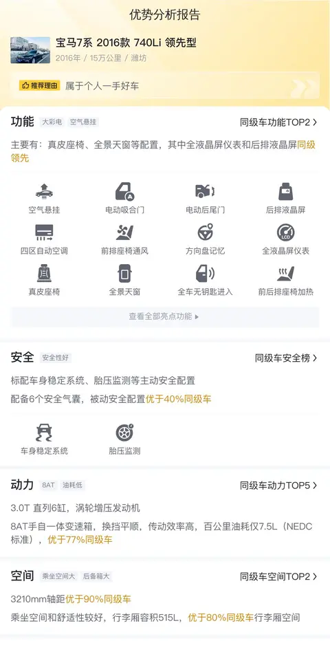 综上所述的新车含税价、用车成本、市场行情、优势分析、同款比价等数据仅供参考。在配置部分,因为二手车非标品,车辆可能会存在配置改装的情况,具体车况信息需要线下结合车辆实际情况进行综合参考。