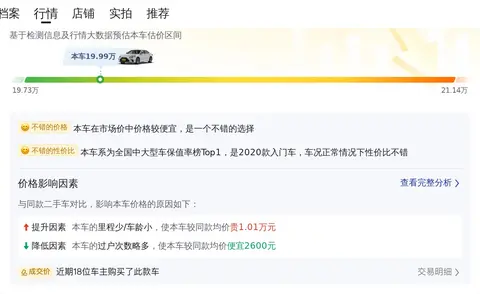 车龄少于均值0.5年,里程少于均值4.6万公里,过户次数多于均值1.6次,颜色为白色,0元,少一个过户,车价大约能再增加2600元,这个也跟车主的使用和维护情况有关。