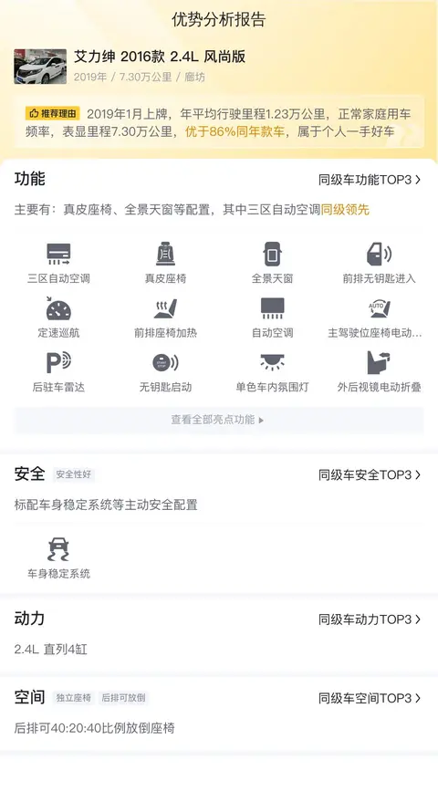 综上所述的新车含税价、用车成本、市场行情、优势分析、同款比价等数据仅供参考。在配置部分,因为二手车非标品,车辆可能会存在配置改装的情况,具体车况信息需要线下结合车辆实际情况进行综合参考。