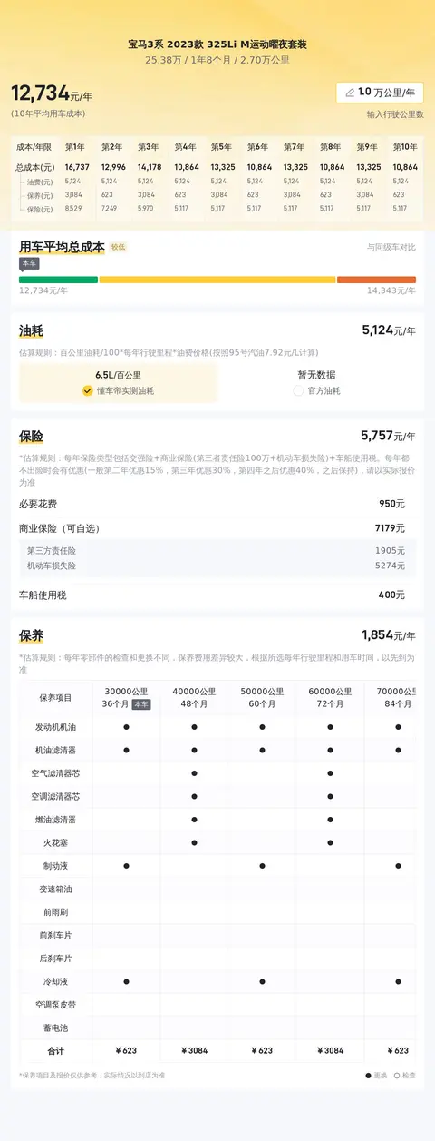 养车成本部分,根据懂车帝大数据分析,该车的10年平均用车成本约为13445元/年。