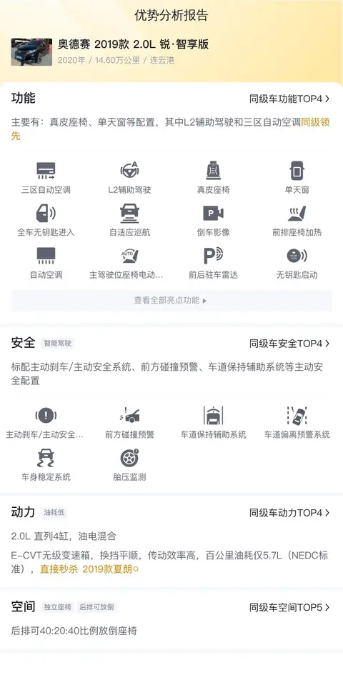 综上所述的新车含税价、用车成本、市场行情、优势分析、同款比价等数据仅供参考。在配置部分,因为二手车非标品,车辆可能会存在配置改装的情况,具体车况信息需要线下结合车辆实际情况进行综合参考。
