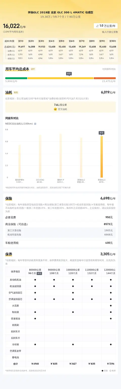 买二手车不仅要考虑买车费用,还要考虑到日常使用花费,通过懂车帝大数据分析,该车的10年平均用车成本大概是16433元/年,具体费用根据不同车主的用车场景和驾驶习惯不同而不同。