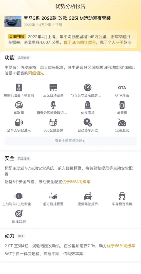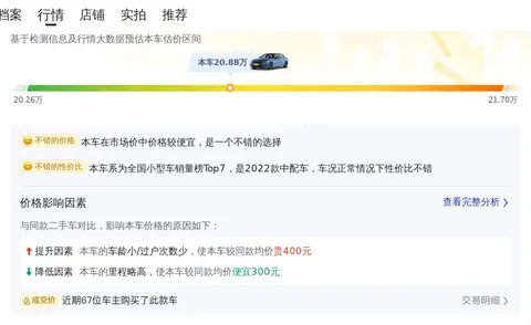 综上所述的新车含税价、用车成本、市场行情、优势分析、同款比价等数据仅供参考。在配置部分,因为二手车非标品,车辆可能会存在配置改装的情况,具体车况信息需要线下结合车辆实际情况进行综合参考。