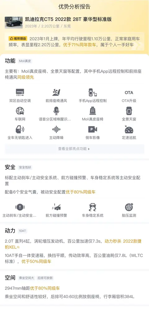 综上所述的新车含税价、用车成本、市场行情、优势分析、同款比价等数据仅供参考。在配置部分,因为二手车非标品,车辆可能会存在配置改装的情况,具体车况信息需要线下结合车辆实际情况进行综合参考。
