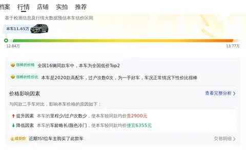 根据大数据分析,这款车的二手车价位在14.01万至17.21万之间,而该车报价仅为11.65万,低于市场价,是一个不错的选择。