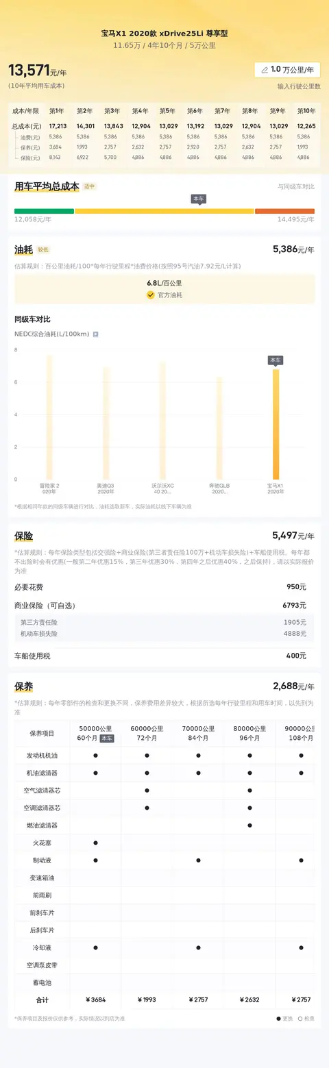 根据估算,这辆车年均综合用车成本大概在每年1.4万元左右。实际费用开销会根据车主的使用习惯和行车环境有所改变。