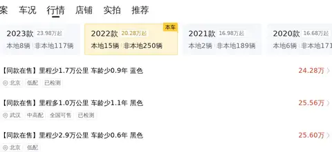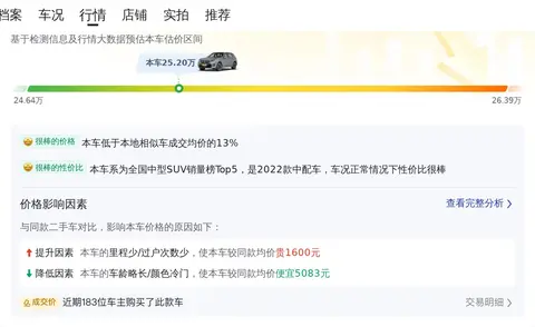 市场行情显示,同款车型的二手车价格大致在25.97万至31.66万之间。这辆车当前报价25.2万,处于较低水平,性价比较高。根据估算,该车未来三年的折价较少,保值效果较好。