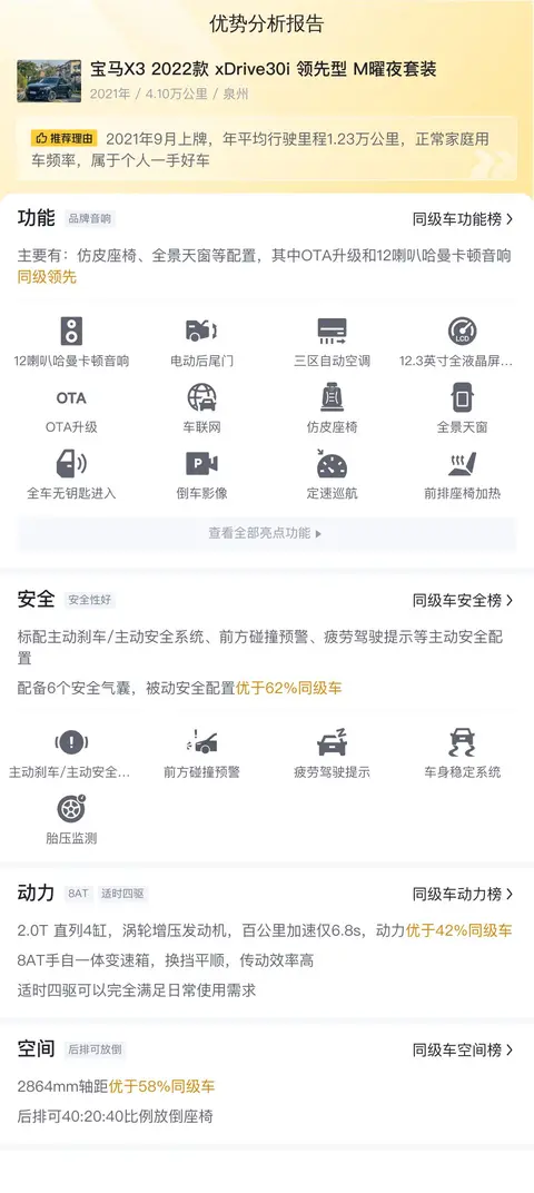 综上所述的新车含税价、用车成本、市场行情、优势分析、同款比价等数据仅供参考。在配置部分,因为二手车非标品,车辆可能会存在配置改装的情况,具体车况信息需要线下结合车辆实际情况进行综合参考。