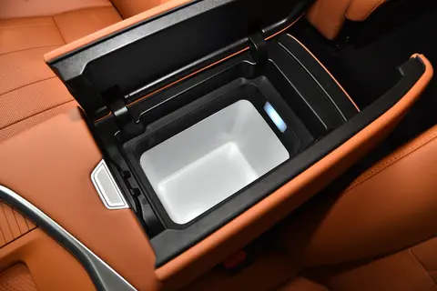 从内饰上看,有两种配色可选,布局豪华大气,充满科技元素。内饰采用了大量的软包覆盖,做工和细节处理的很精细。同时,采用了12.3英寸仪表盘和15.6英寸中控屏,以及29英寸抬头显示功能和17.3英寸后排娱乐屏。并搭载了第三代智慧空间系统,它不仅拥有流畅的操作、极速的语音响应,应用还特别丰富。此外,还标配了多色氛围灯、车载冰箱、后排独立空调、手机无线充电等豪华配置。