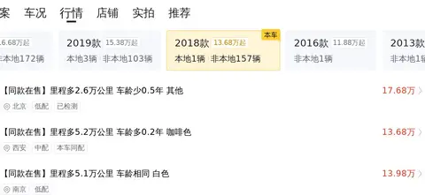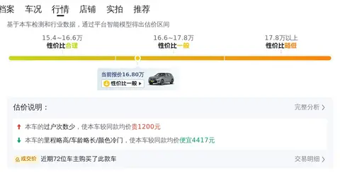 车龄超过一定年龄,车辆的售价会随着车龄增长而逐渐下降,但也会因为保存状况良好而价格高于同年车龄的车。了解市场行情价是判断一辆二手车价格是否合适的重要依据。根据大数据统计的二手车市场行情,我们可以看到该车的售价。