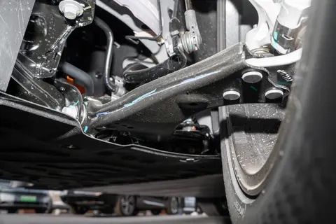 在安全性上,我们再重点来说一下领克Z20的全框式副车架。首先,较大的尺寸使得它能够安装更稳固的悬架和支撑这台非常强劲的发动机。其次,这个设计覆盖了整个发动机舱,与车身连接后,大大提升机舱的刚性,车内的空间表现也更优秀。另外,经过优化的侧边纵梁设计,全框式副车架能有效的控制发动机在碰撞时的下沉轨迹,吸收部分碰撞能量,全力保护动力总成。而非全框副车架,它是车辆前后车桥的骨架部分,它是支撑前后车桥和悬挂的支架。在车辆的安全结构中,它的最大作用就是连接和支撑。