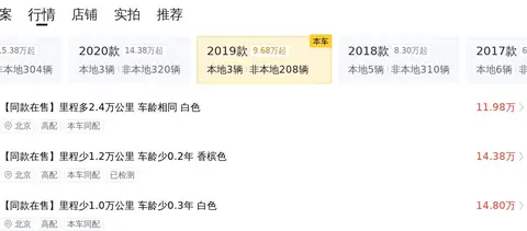 圈内流行着这样一句话:“二手车一车一况,一况一价”。为助您更好地掌握这款二手车的价格行情,我们收集了全国范围内相同车型的在售价格情况。