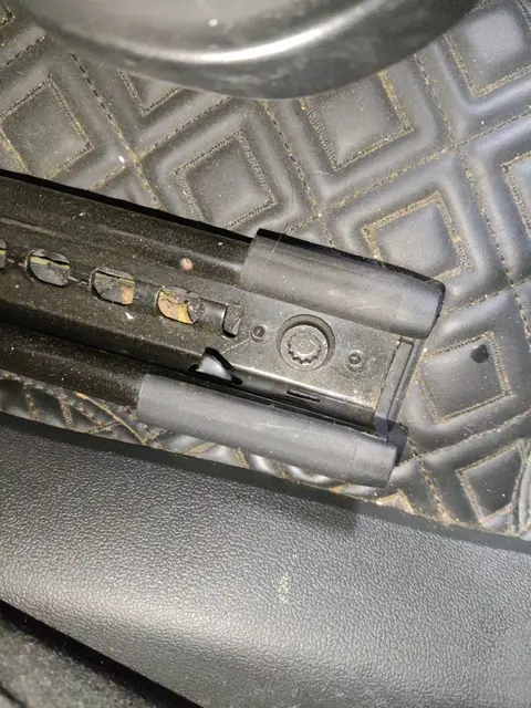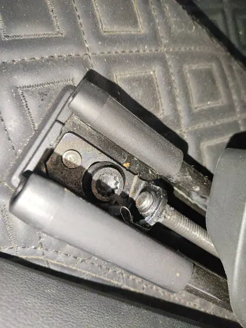 该零部件,拆卸痕迹(螺栓拧动),非部件损伤,通常是由于内饰板件调整或安全带张紧器召回维修所致,不影响车辆使用