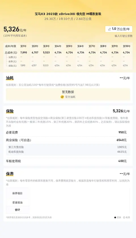 买车不是一锤子买卖,除了购车时的花销,还有日常使用花费。经过估算,这辆车的10年平均用车成本大概是每年1.5万元左右。