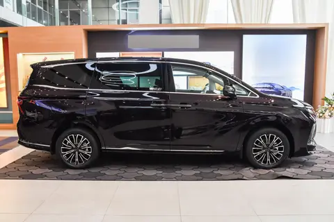 星海V9拥有5248×1920×1820mm的长宽高尺寸,从侧方来看其锻造形态方形质感较重,顶棚部分未做过多曲线状下滑处理,反而因此平行状态可令星海V9两侧整体玻璃呈现更为规整打造表现,配合后方私密性玻璃的展现布局,其车体玻璃所具备的暗色系呈现感受也可令星海V9于外观上半部分拥有一定性质瘦身感受。但星海V9车体下半部分腰线过渡样式平直且舒缓,除底部轮廓有一定线条曲度感对其车轮及底板,行轮廓修饰外,星海V9侧身腰板处几乎再无其它过大曲线弧度打造,此番设计也可从侧面展现出星海V9所具有的MPV身材,并通过3018mm轴距展现可见其对星海V9内部空间会形成较大概念修饰。