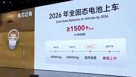 之前提到了,奇瑞的进度是2027年批量上市,届时纯电续航目标是超1500km。