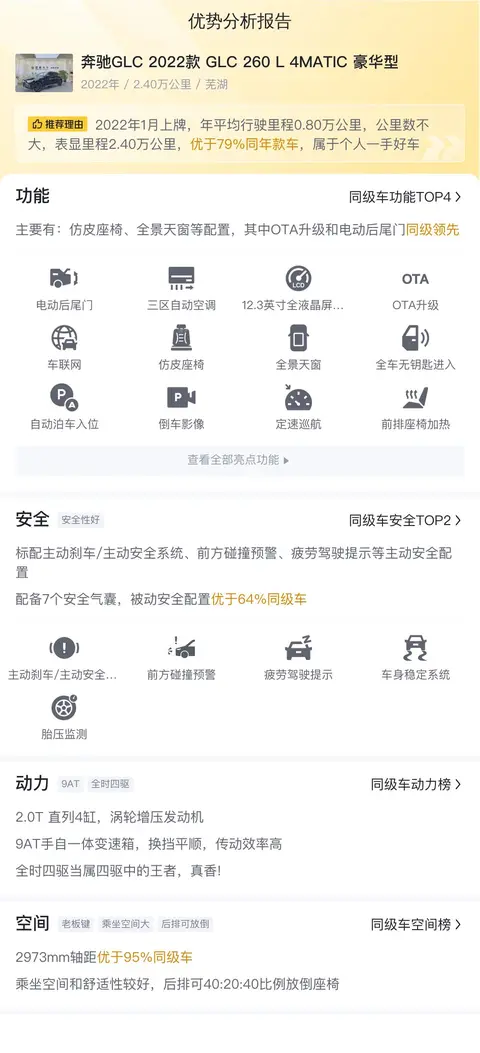 9. 高性价比,超值之选:作为一款二手车,这款奔驰GLC 2022款 GLC 260 L 4MATIC 豪华型在保持卓越性能和豪华配置的同时,价格也更加亲民。对于想要拥有一辆高品质SUV却又不想花费过多资金的消费者来说,它无疑是一个理想的超值之选。