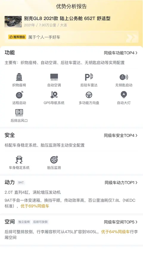 别克GL8(图片|配置|询价)是上汽通用别克品牌下的一款中型高端MPV车型,自1999年首次推出以来,凭借其豪华舒适、空间宽敞、配置丰富等特点在中国MPV市场上占据了重要地位,它不仅定义了中式MPV的标准,还持续引领着市场潮流。今天我们就为您带来一辆二手别克GL8,具体版本为——2021款陆上公务舱652T舒适型。