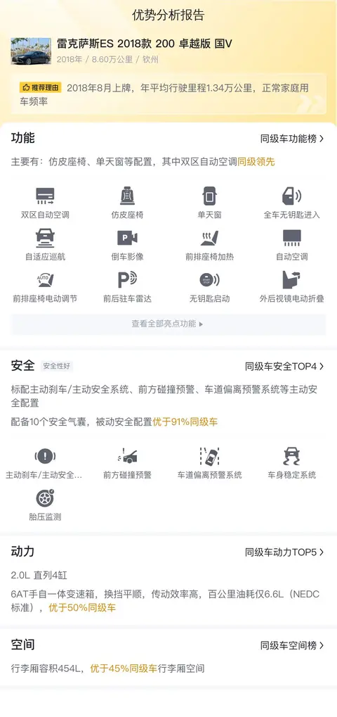 车辆型号:雷克萨斯ES 2018款 200 卓越版 国V