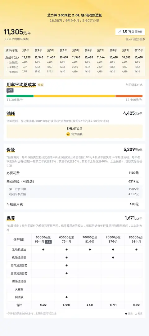 用车成本上,按一年20000公里计算,该型车每年燃油、保险及保养的综合用车成本约13646元,具体费用要看用车频率及使用环境而定。