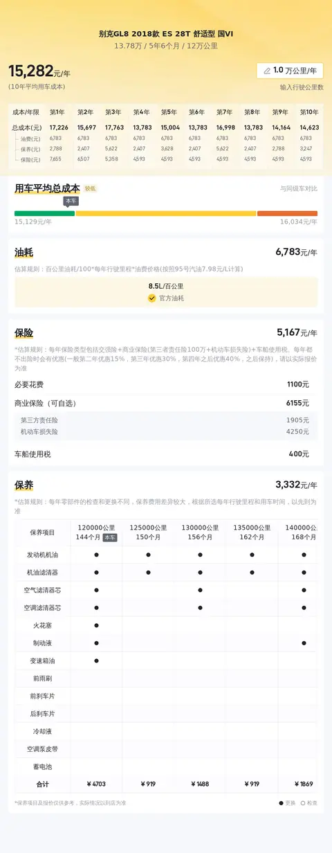 这款车的油耗约为8.5L/百公里,在MPV里不算低,但考虑到其豪华配置与性能,这一油耗水平仍表现出色。十年平均用车成本大约15180元/年,但受油价波动、保养状况等因素影响,实际费用可能有所不同。