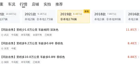 目前,这款车的二手车行情大致在12.63万至15.51万之间,具体的价格因车辆的车况、里程数等因素而有所不同。作为参考,我们选了一些同款车型在全国的车源,以便让您更好地了解这款车的市场价格。